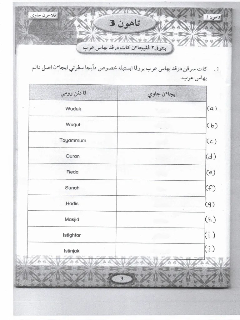 Jawi tahun 3 (kata pinjaman bahasa inggeris). Jawi online activity for tahun 4. Murid telah mempelajari perkataan pinjaman bahasa inggeris. Baca versi flipbook dari nota .